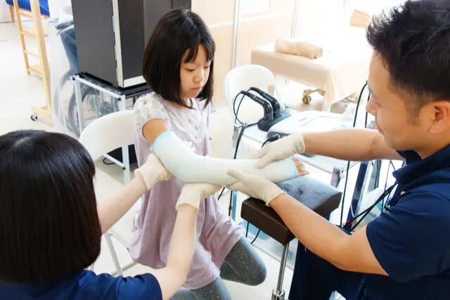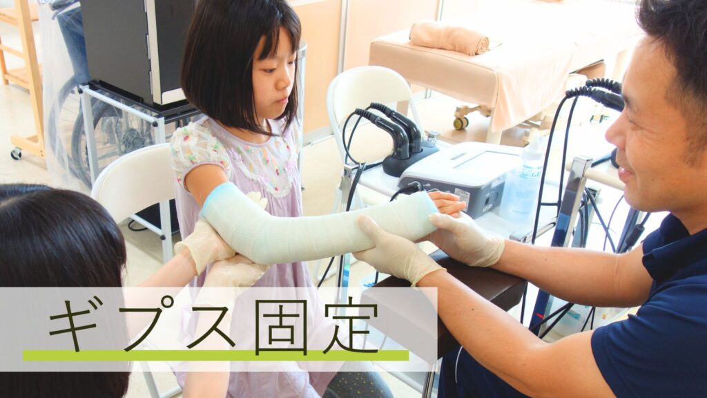 ※骨折、捻挫等には固定を施します。